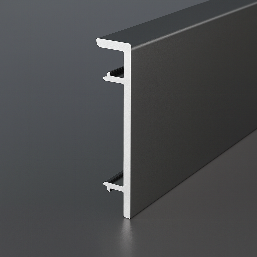Šios grindjuostės montuojamos ant specialių laikiklių. Pirmiausia laikikliai pritvirtinami prie sienos numatytais intervalais. Tuomet ant jų užmaunama grindjuostė — ji tvirtai užsifiksuoja be papildomų klijų ar varžtų. Toks montavimo būdas užtikrina greitą, švarų įrengimą ir leidžia prireikus grindjuostes lengvai nuimti ar pakeisti.