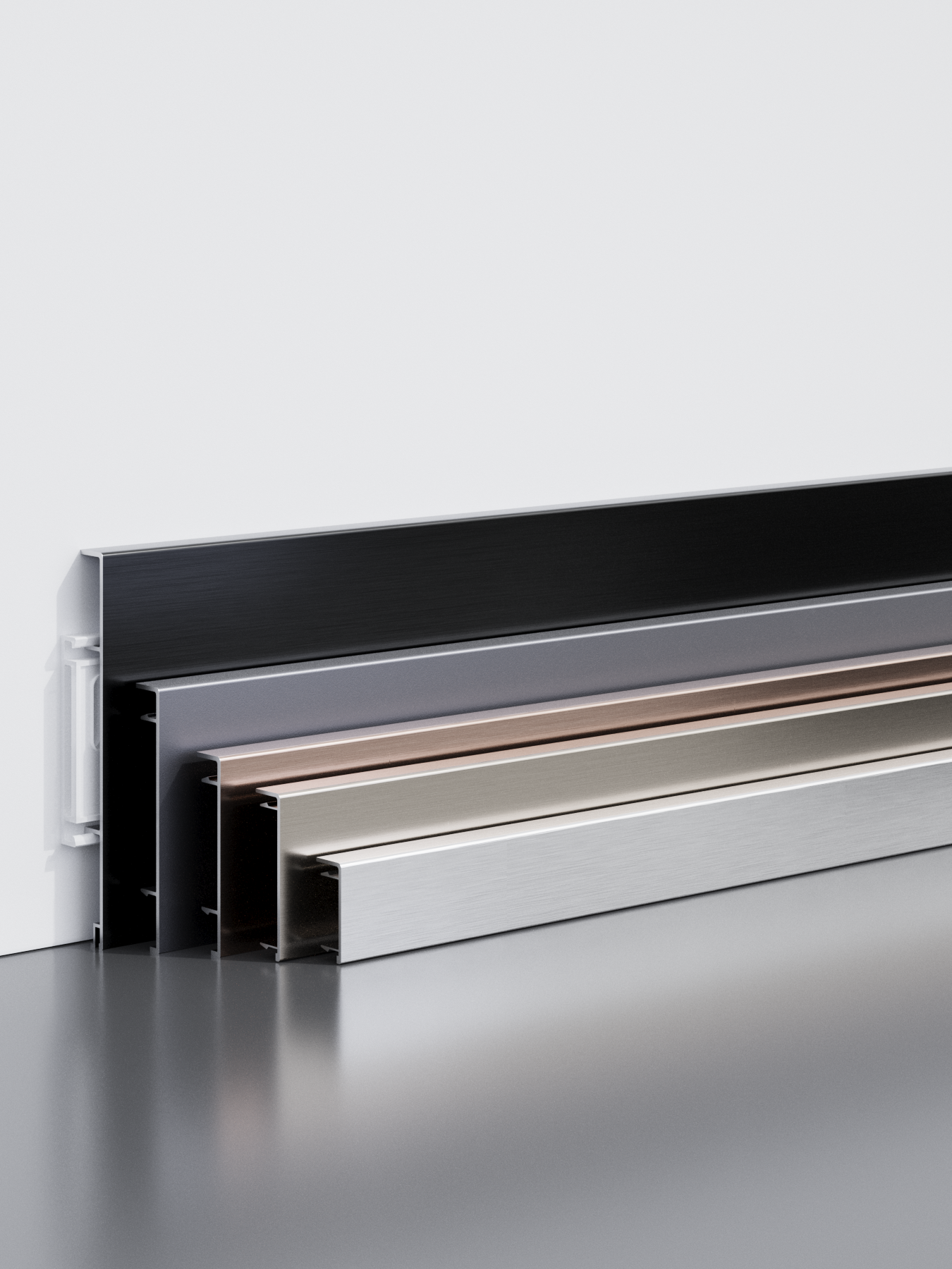 Dekoratyvinės aliuminio lydinio grindjuostės LT-GC serija išsiskiria moderniu dizainu, subtiliomis spalvomis ir aukšta gamybos kokybe. Pagamintos iš tvirto aliuminio lydinio, jos pasižymi atsparumu, ilgaamžiškumu ir estetiška, šlifuoto metalo tekstūra, kuri suteikia interjerui tvarkingą, šiuolaikišką įvaizdį.