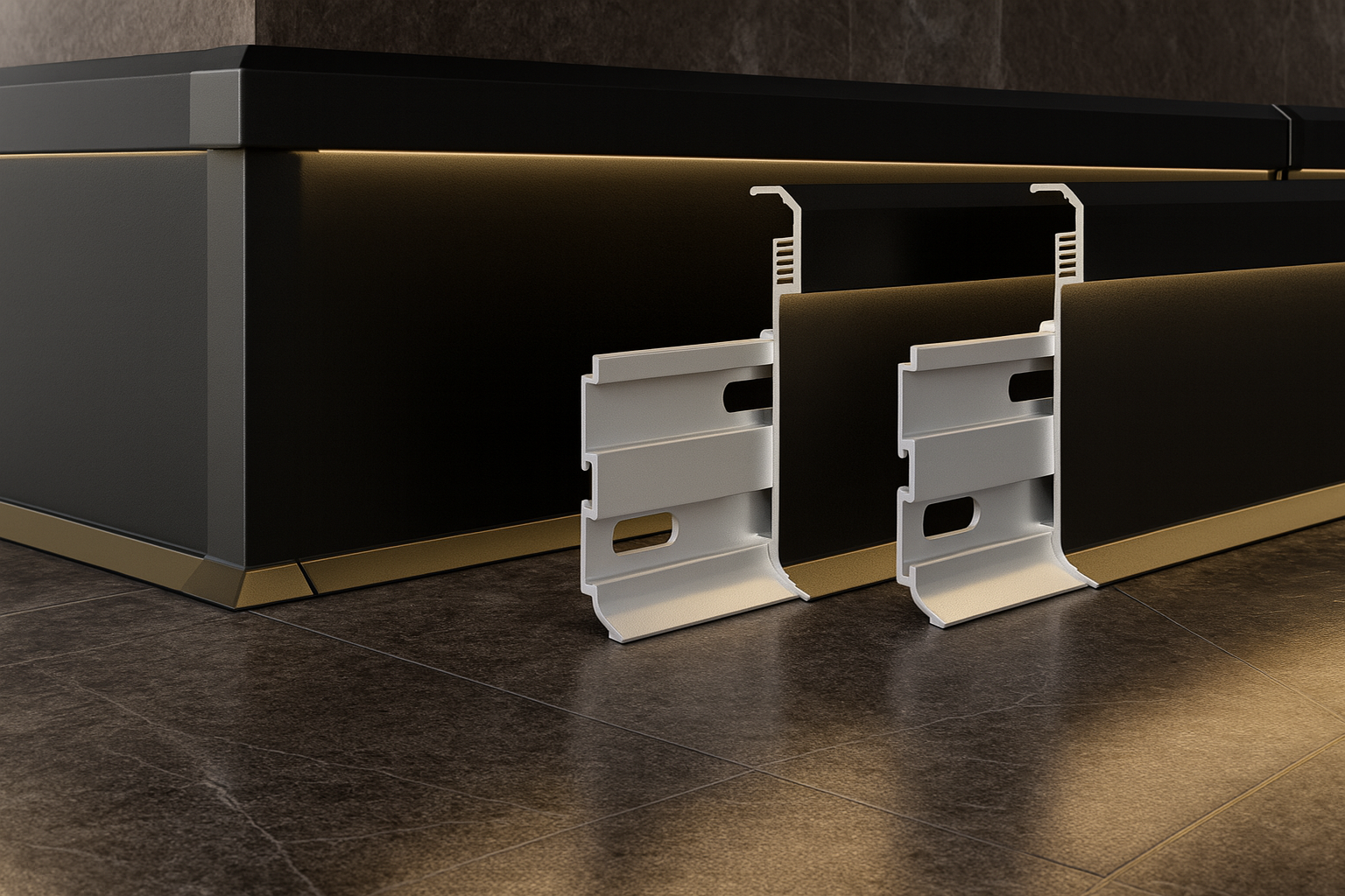 Pagamintos iš aukštos kokybės aliuminio lydinio, šios grindjuostės yra lengvos, tvirtos ir atsparios korozijai. Integruotos LED juostos vieta leidžia sukurti subtilų apšvietimą, kuris paryškina sienų linijas, suteikia erdvei modernų ir jaukų įvaizdį, bei padeda vizualiai praplėsti interjerą.